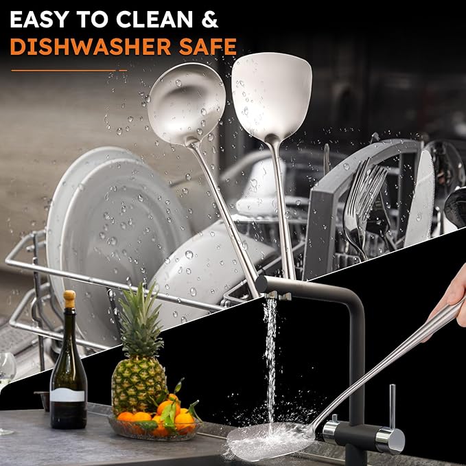 - AFTER-SALES SERVICE GUARANTEE:They are easy to clean and dishwasher safe, which is a huge plus for cooks.If you have any quality issues with our cooking utensils, just contact us and we will make it right even after the Amazon return window was closed