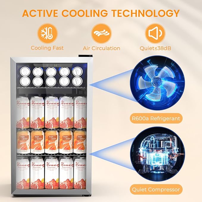 - [Versatile Beverage Storage]: Whether you are preparing for a party or you want to enjoy fresh drinks anytime, the 3.2 cu.ft beverage refrigerator can fit up to 130 standard cans! Fresh, cool beverage anytime!