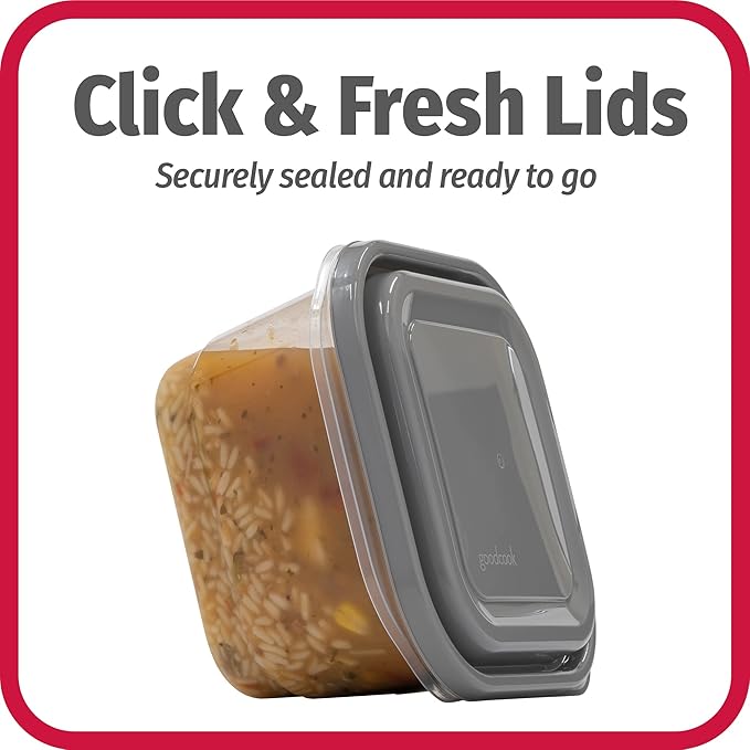 - SECURE LIDS: Click & Fresh air-tight lids make a clicking sound to let you know when they are sealed, secured, and ready for storage. The domed shape of the air-tight containers for storage won’t compress your food.