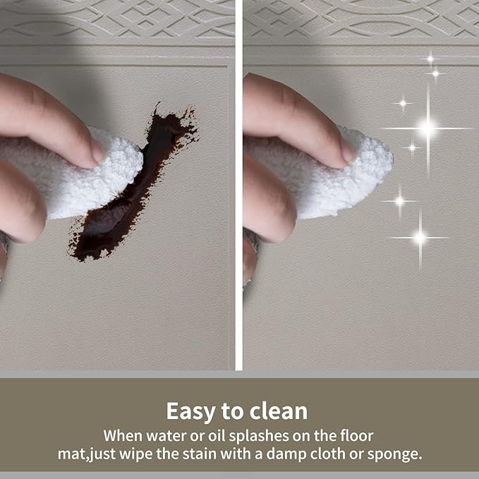 - EASY TO CLEAN stain resistant and waterproof material makes Broad i Home Anti Fatigue Mat easily wipe clean and will not collect dirt. Novel innovation of natural wood grain pattern designs on the top of our comfort mat makes you be immersive