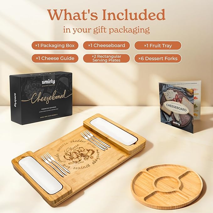- Party Like a Pro - Impress your guests with SMIRLY's wood cheese board and charcuterie tray. Designed for effortless entertaining, this compact tray is perfect for serving a delightful variety of meats, cheeses, crackers, veggies, and more.