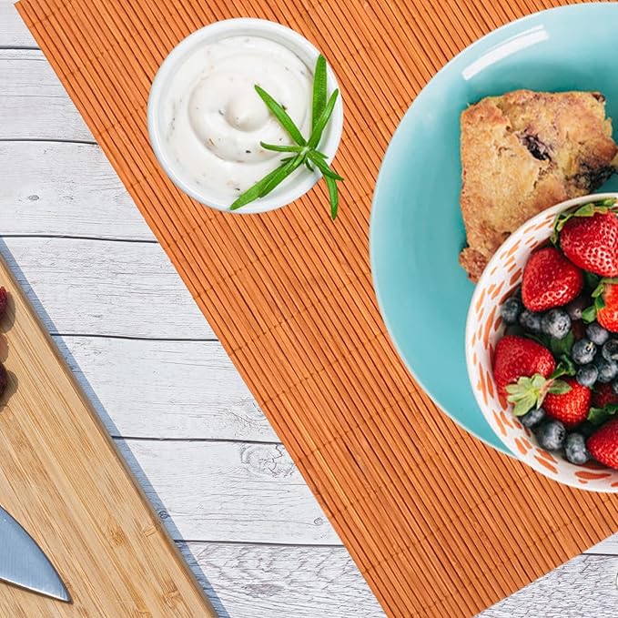 - 【PERFECT PROTECTION】:These bamboo placemats for dining table have a special heat insulating effect that protects any table from damage. The bamboo mats act as a shield between hot plates and your table, while also preventing spills, crumbles, or stains from destroying the furniture.The anti-slip feature can also effectively protect you and your family during meals.