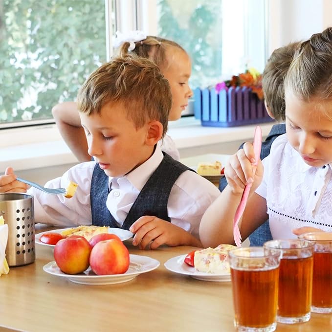 - STYLISH - Simple and modern design, smooth texture, pastel colors. Our plastic travel utensil set with case is a perfect gift for your family or your friends. Note: If there is a problem, please contact us, we provide lifelong replacement service for you.
