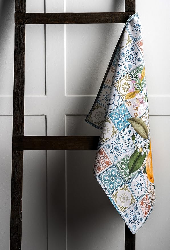 Maison d' Hermine Kitchen Towels Set of 3 100% Cotton 27.50" x 20" Reusable Cloth Tea Dish Towels Absorbent with Hanging Loop for Kitchen, Home, Dining, Cocktail Parties Spring/Summer (Agrume)
