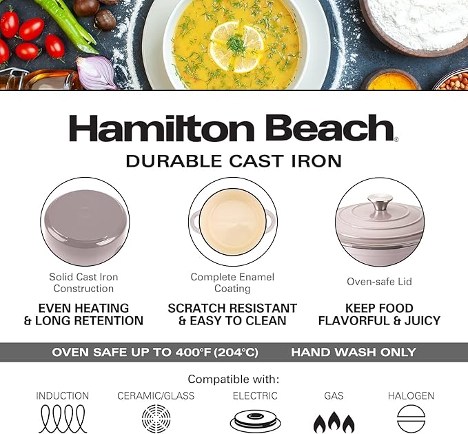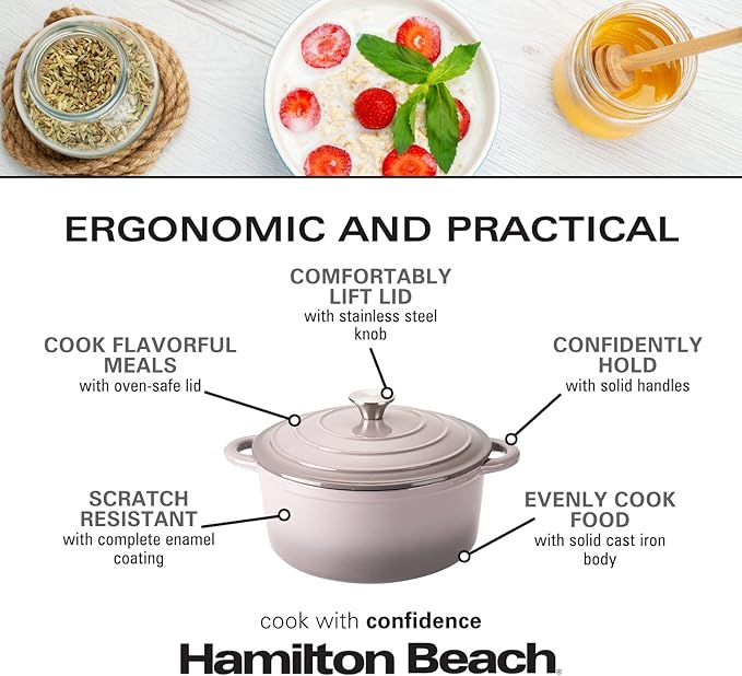- High Quality: We want our customers to be completely happy and satisfied, so we pack each Hamilton Beach Cast Iron Dutch Oven Pot with Lid 5.5qt, Gray with care. If you have any questions or concerns about the product, please feel free to reach out to us.