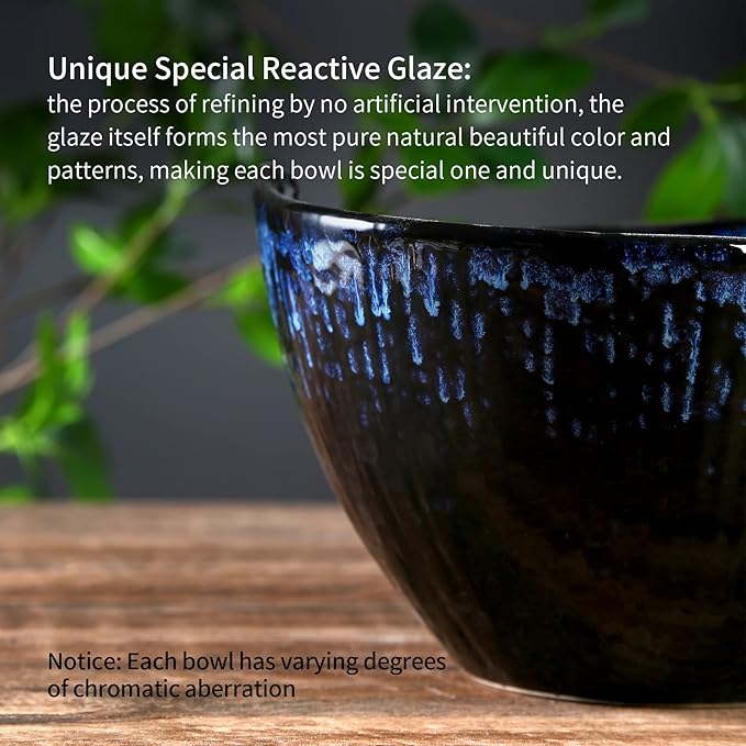 - 【 Unique Ramen Bowl set 】are made of high quality porcelain, with special Reactive glaze, the process of refining by no artificial intervention, the glaze itself forms the most pure natural beautiful color and patterns, making each bowl is special one and unique.