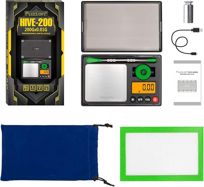- Complete Kit for Gram Scale: The scale comes with a little container, double ended spoon, silicone mat, and a drawstring velvet bag. The container is perfect for holding, while the spoon and silicone mat make it easy to transfer and handle. The velvet bag keeps everything together and protects the scale from scratches.