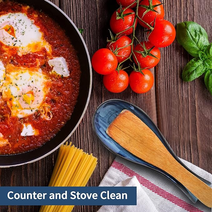 - KEEP YOUR KITCHEN NEAT: The unique shape makes the ceramic spoon rest catch all the drips and sauce from your kitchen utensil, protecting your kitchen countertop and stove top messy and dirty.