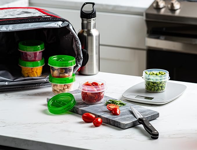 - 4 oz 20 Pack Twist Top Containers Clear bottom With Green Top Twist on Lids Reusable, Stackable, Food Storage Freezer Container