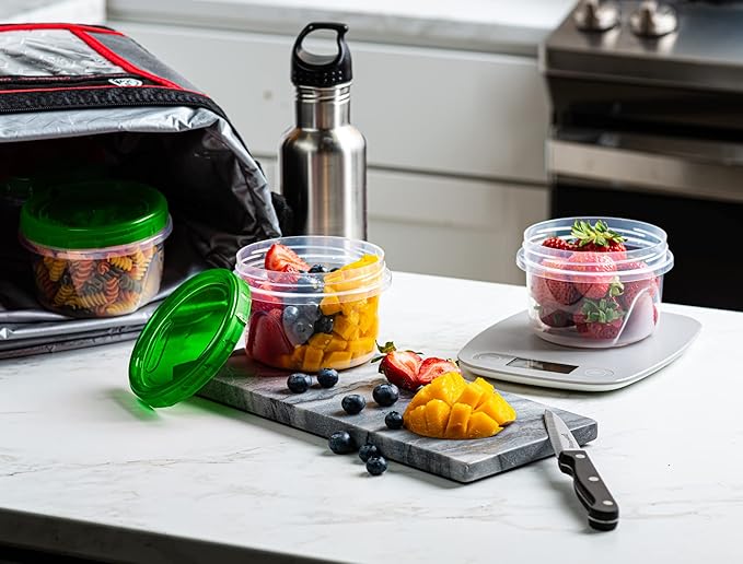 - 16 oz 10 Pack Twist Top Deli Containers Clear bottom With Green Top Twist on Lids Reusable, Stackable, Food Storage Freezer Container