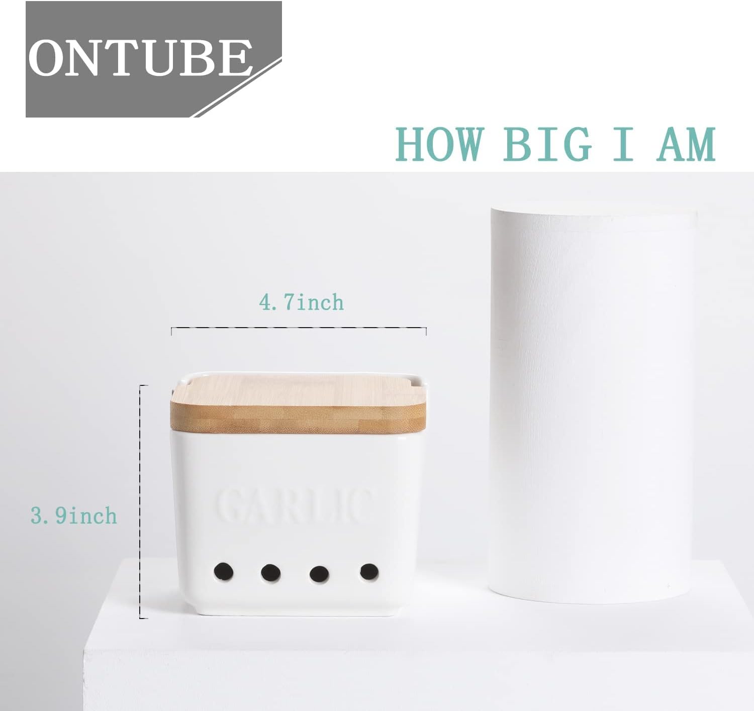 ONTUBE Garlic Keeper with Lid, Ceramic Garlic Holder Storage, Garlic Container for Kitchen, Garlic Saver to Keep Your Garlic Cloves Fresh Longer 4.7-Inch, White