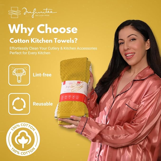 Infinitee Xclusives 100% Cotton Kitchen Towels - 15x25 Inch Ultra Soft Tea Towels, Super Absorbent Terry Dish Towel for Kitchen Linens |Radiant Yellow|