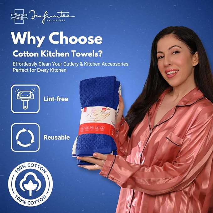 Infinitee Xclusives 100% Cotton Kitchen Towels - 15x25 Inch Ultra Soft Tea Towel, Super Absorbent Terry Dish Towels for Kitchen Linens |Blue|