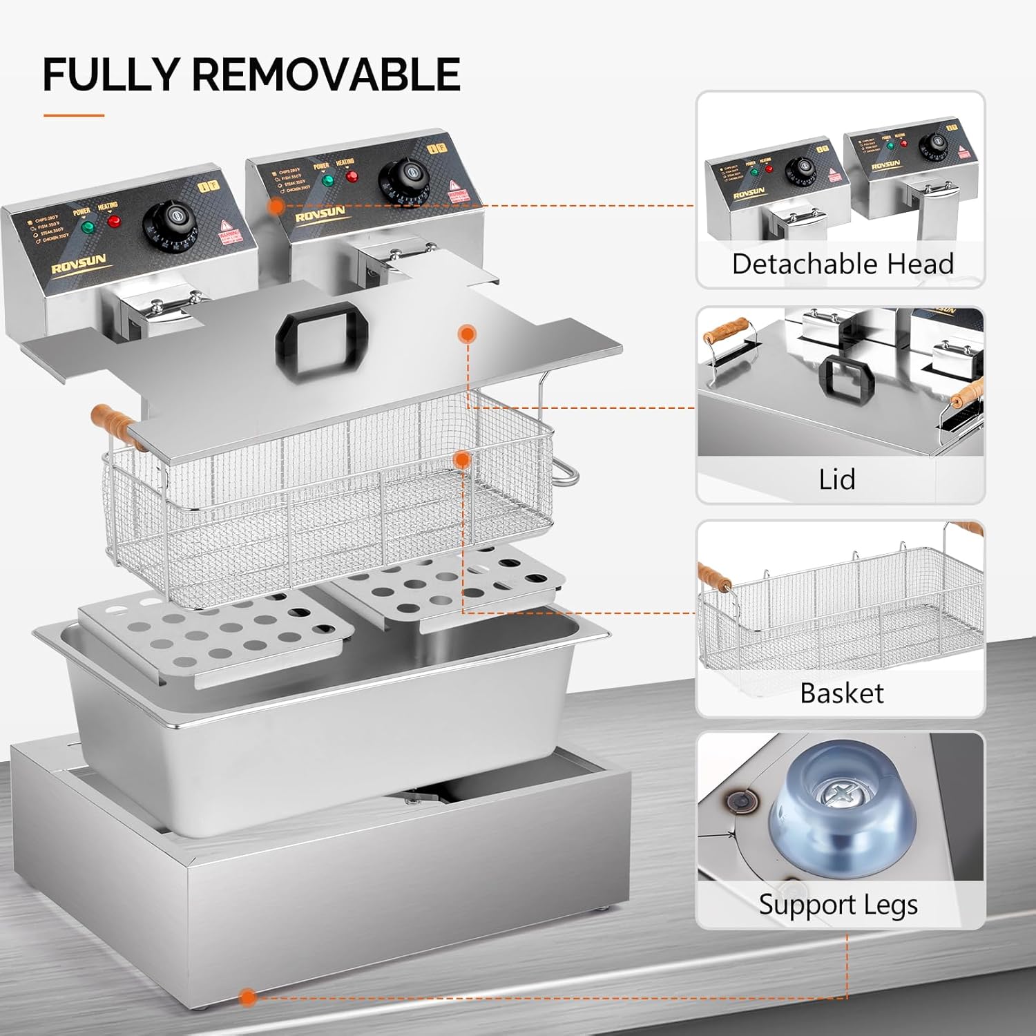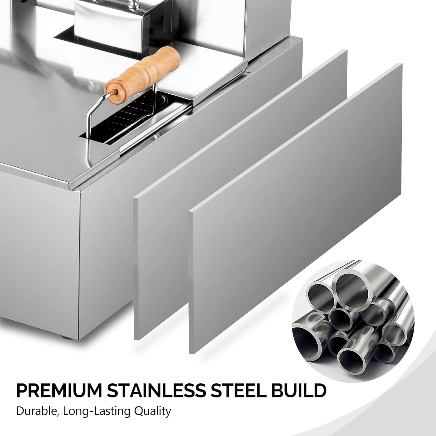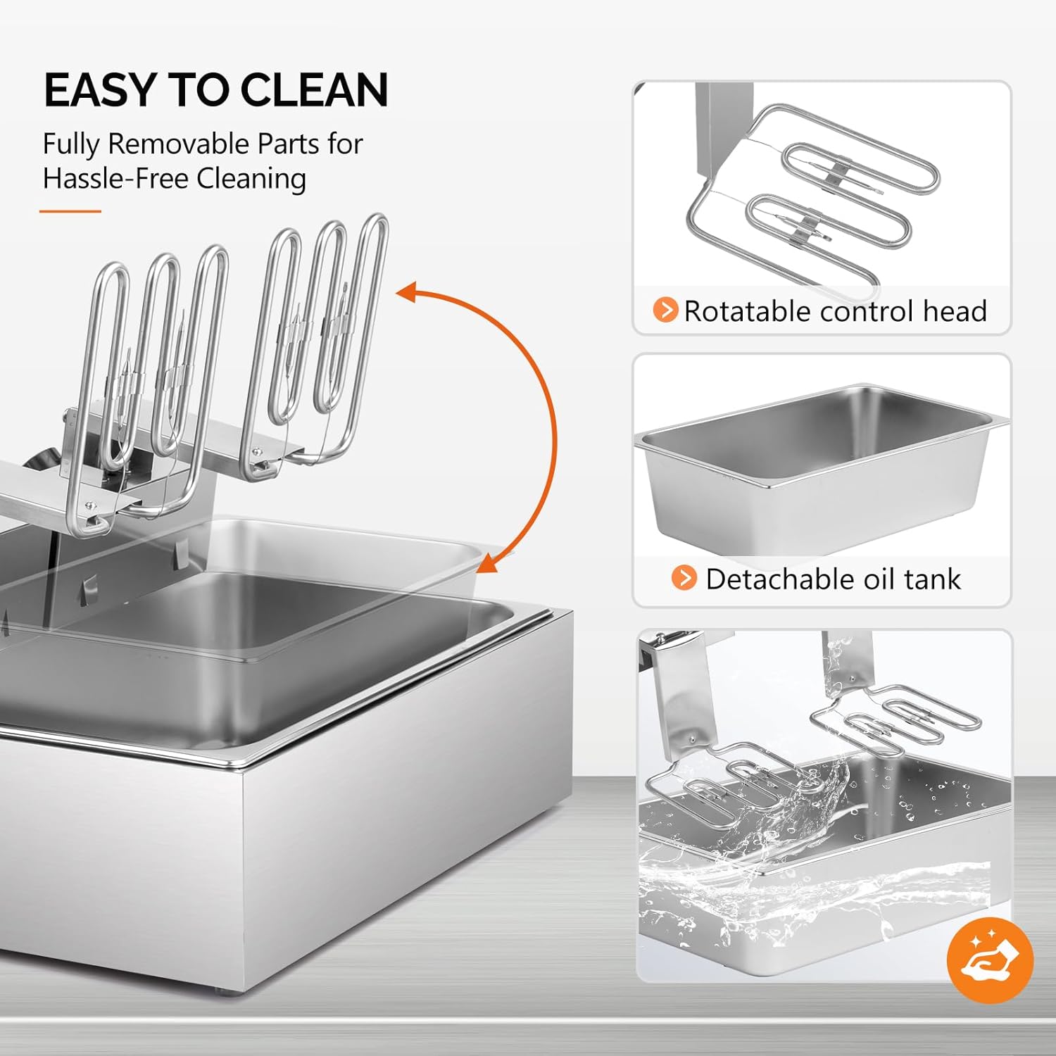 - EASY TO CLEAN: Stainless steel construction and detachable tank of the oil fryer makes it easy for cleaning. And it is also designed with residue plate for filtering dregs.