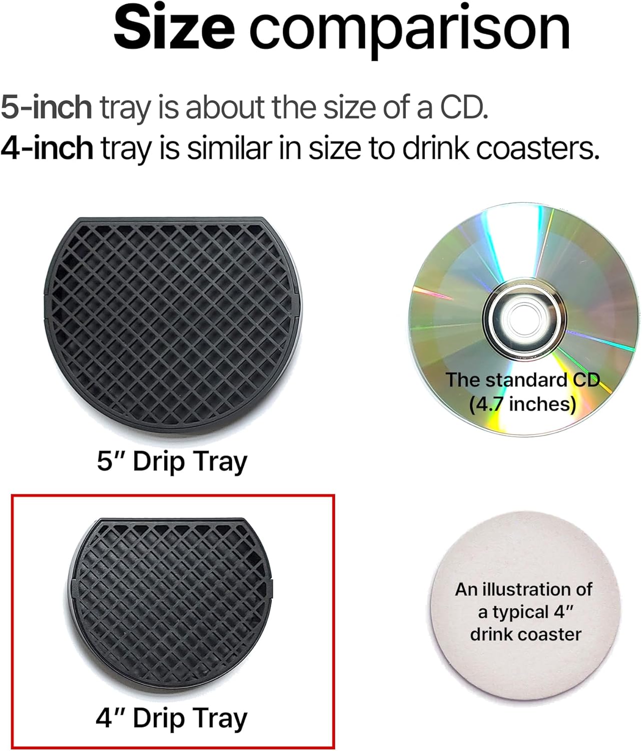 2, Coffee Drip Catcher 4 inches Small Drip Tray for Espresso Machine Carafe Water Urn Durable ABS Plastic, Black