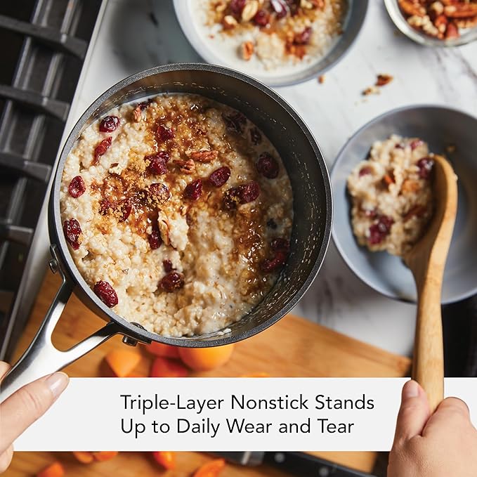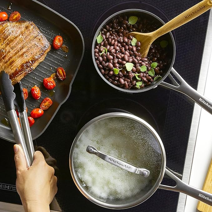 - PREMIUM FOOD RELEASE: KitchenAid hard anodized saucepan is finished with triple layer nonstick to stand up to daily wear and tear