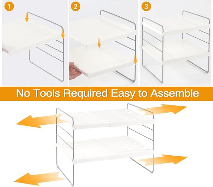 JUPELI Foil and Plastic Wrap Organizer, Expandable Kitchen Pantry Storage, Height Adjustable Cabinet Rack for Kitchen Organization, Aluminum Foil -3 Tier 9.8" to 15.6"L