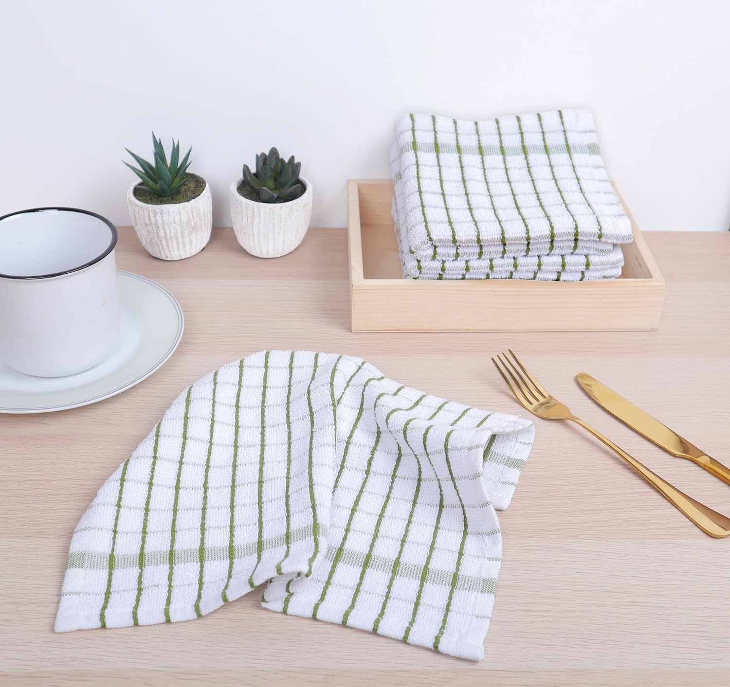 - SET OF 8 DISHCLOTHS: This set includes 8 premium-quality, 12" x 12" dish cloths, crafted from , high-density terry cotton. Ideal for everyday kitchen use, each cloth provides an excellent balance of softness and absorbency, ensuring a luxurious feel and optimal cleaning performance.