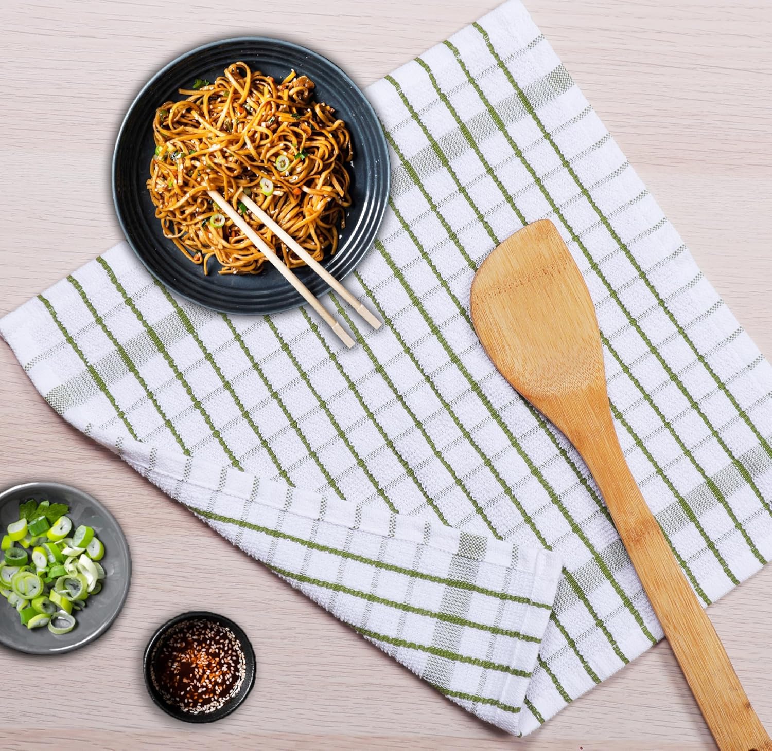 AMOUR INFINI Kitchen Dish Cloths Set of 8 - Ultra Soft, Highly Absorbent, Quick-Drying Terry Cotton Dishcloths 12"x12" Inch Wash & Cleaning Cloths for Kitchen & Dishwashing (Green)