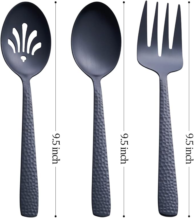 Matte Black Serving Utensil Set, 9.5-inch Stainless Steel Large Serving Spoon and Serving Fork, Satin Finish