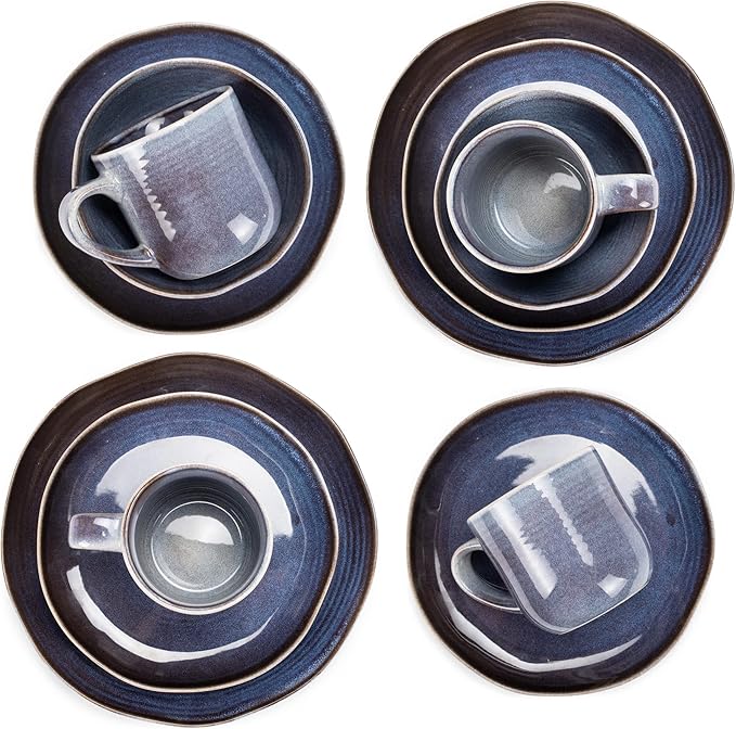 - Casual beauty is effortless with this dinnerware set; Freeform rims and glaze finish bring artisanal warmth and a classic farmhouse look to your everyday family dining; Eye-catching finish adds a pop of color to your table