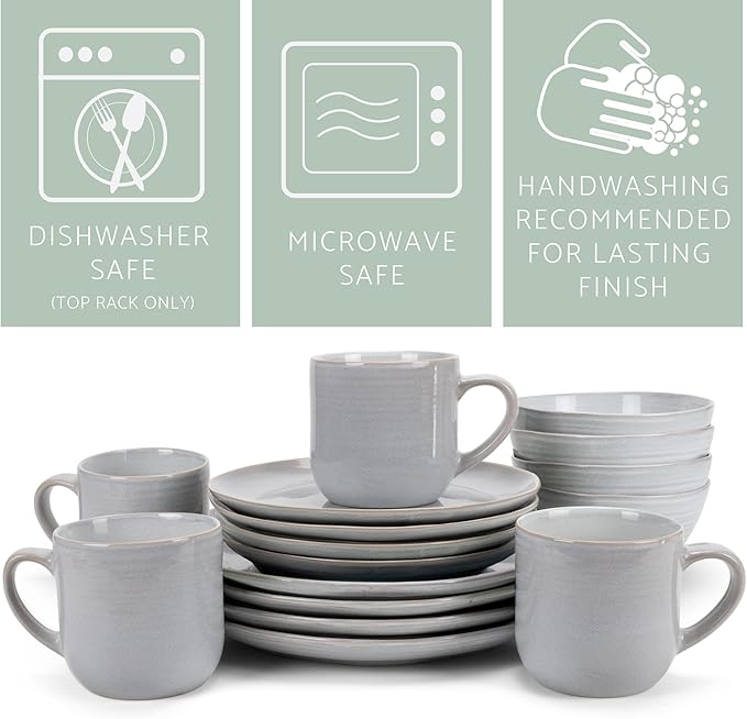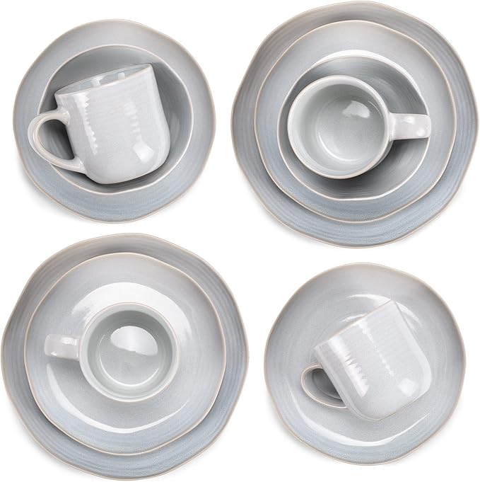 Elanze Designs Reactive Glaze Farmhouse Rustic Boho Ceramic Stoneware Dinnerware 16 Piece Plate Bowl Mug Dish Set - Service for 4, Pale Grey