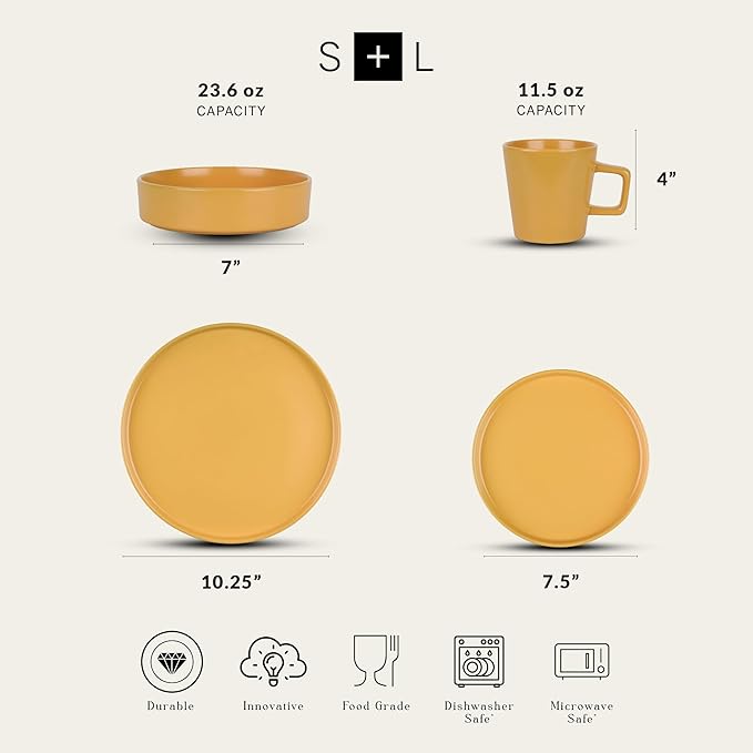 Stone lain Cleo Stoneware Dinnerware Set, 16-Piece Service for 4, Yellow