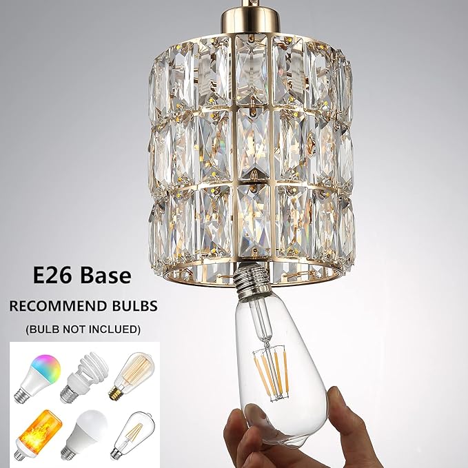 - 【Adjustable Height】The mini crystal pendant light offers a total height of 59 inches, with a crystal shade measuring H5.9 inches x D5.9 inches, and a ceiling base of 4.7 inches x 0.98 inches. The adjustable cord can extend up to 51 inches, allowing for customized installation, including on sloped ceilings. Ideal for kitchen lights, this feature ensures the perfect fit for any space. Please check the size before purchasing