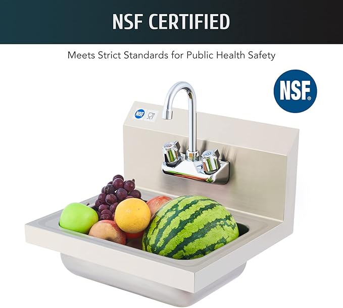 WILPREP Hand Sink Commercial Stainless Steel Sink for Washing, NSF Utility Sink with Gooseneck Faucet, Wall Mount Kitchen Sink for Restaurant Bar RV Bathroom Laundry Room (17 x 15 Inches)