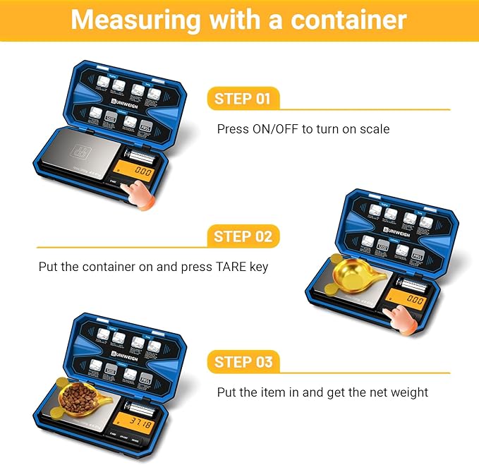 - SMART & EASY TO USE: Press the "Tare" button to zero the weight of the container, one-click calibration technology, smart auto-off after 180 seconds of inactivity, overload protection and low battery indication;
