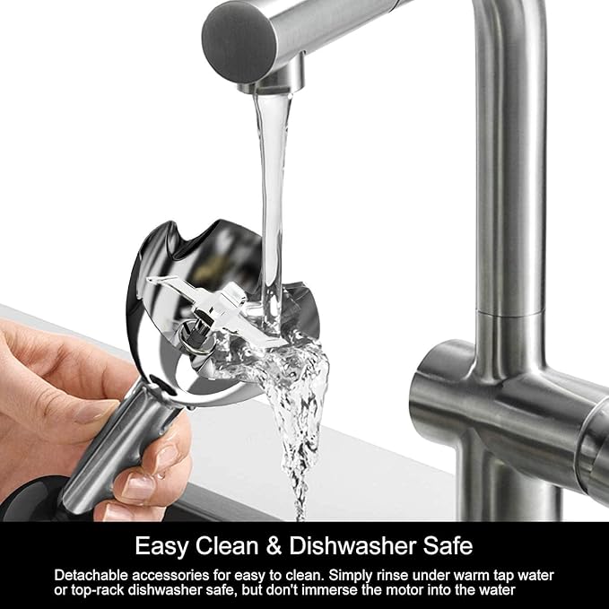 - Ergonomic Design + Easy to Clean : The ergonomic handle gives a non-slip and comfortable grip when continuously blending ingredients. All attachments (excluding the motor part) are detachable, easy to clean, attachments dishwasher safe (without the main machine header) and BPA free. This blender is fully certified.
