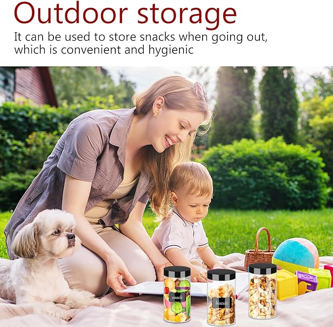 - 【Leak Proof&Ergonomics Design】Each plastic mason jar is straight-sided and has a wide-mouth design, allowing for easy filling and removal. Keep things organized to avoid mess. The screw-on top lid creates an airtight seal to provide complete protection for your things inside the food jar container. maintains the maximum freshness of food. The food storage jars have a slim body, which makes them portable and convenient for you to grasp them and pour out the food easily.