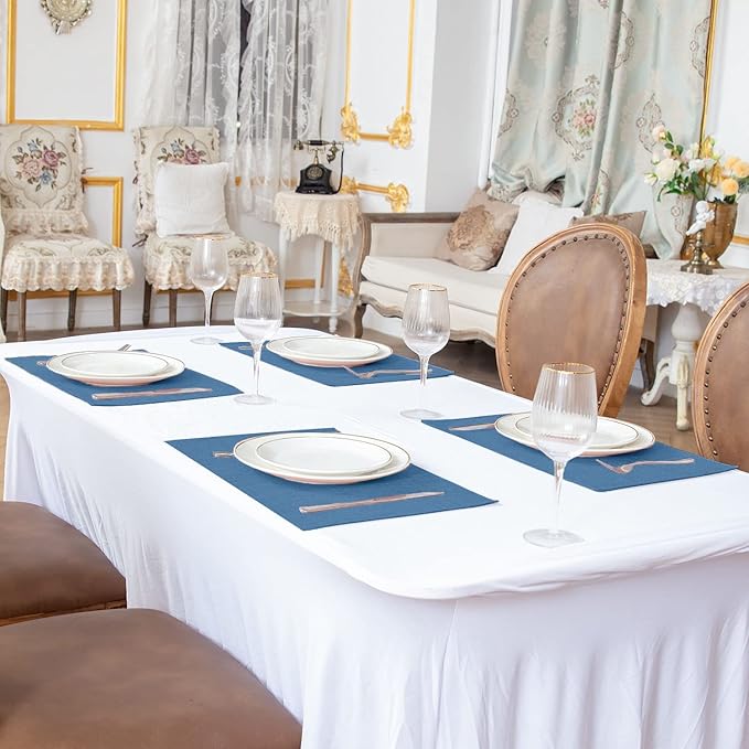 Linen Placemats Set of 8, Machine Washable, Heat Resistant, Wrinkle Free, Thick Polyester Kitchen Place Mats for Dining Table (Navy Blue)