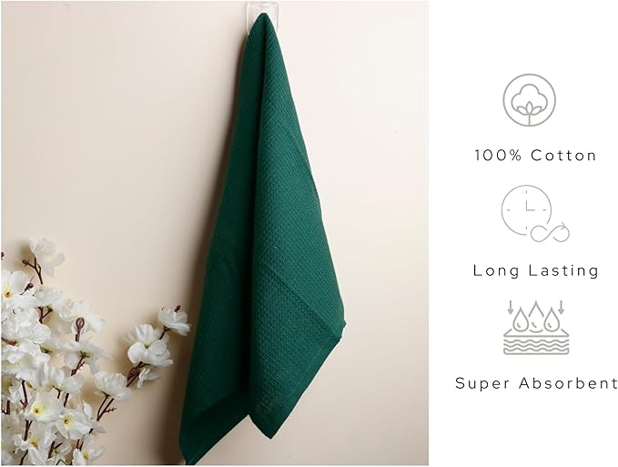 PurpleEssences Waffle Weave Kitchen Towel, 100% Cotton - 15x25 Inches, with Hanging Loop Ultra Soft Absorbent Quick Drying Dish Cloth, Tea and Hand Towels, 6 Pack - Christmas Holiday Winter - Green