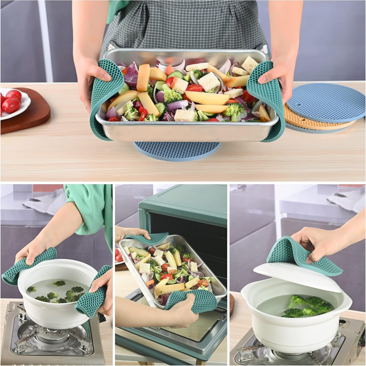 - QUALITY SILICONE TRIVETS: Made of food grade silicone materials, BPA free, eco-friendly, reusable and durable.It is <br>easy to bend and twist. Can be touched food directly, health.