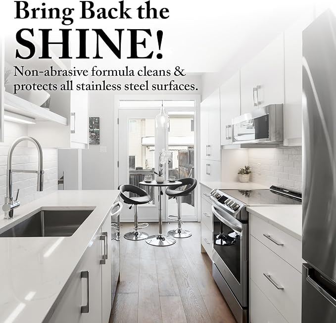 - Non-abrasive formula with optical brighteners restore the natural gleam of your appliances, making them look brand-new.