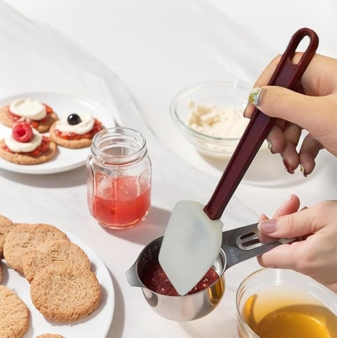 - 【Silicone Spatula Head】Made of food-grade silicone, this spatula leaves non-cleanable food particles or stains. Softer than metal/wooden spatula, it cleans pots, pans, and bowls effectively without scratching to protect your cookware. Its firm yet flexible design ensures efficient food handling without bending. The non-removable handle enhances durability, and it’s dishwasher-safe for easy cleaning.