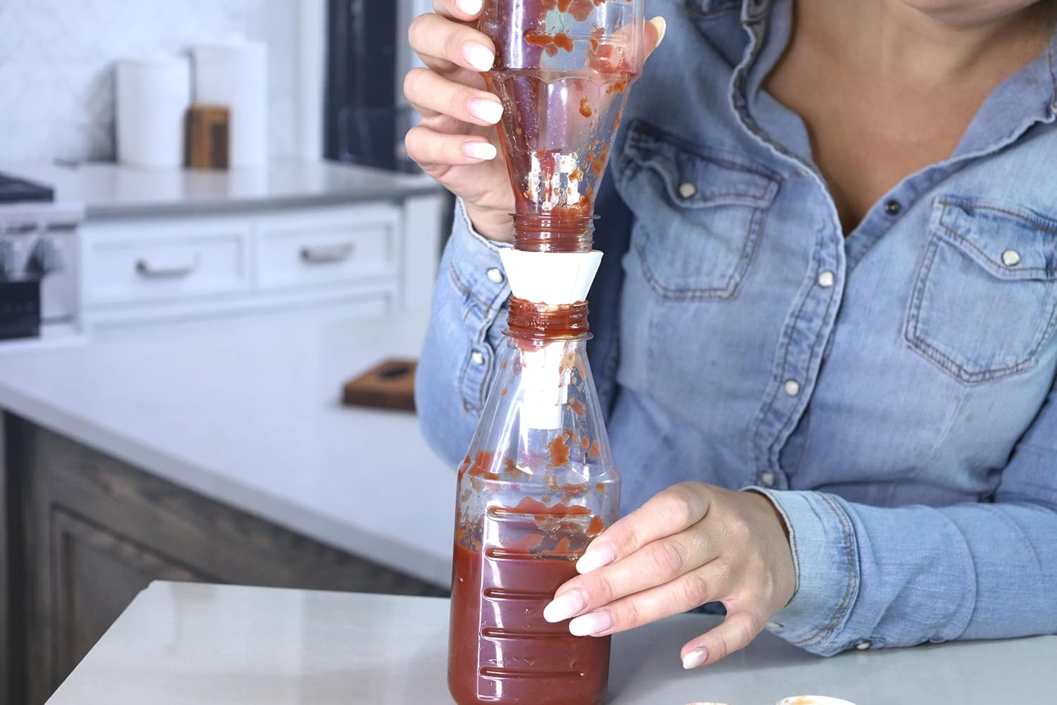 - Multiple Kitchen and Bath Use β Ideal for lotions, shampoos, and conditioners in the bathroom or ketchup, mustard, and other condiments in the kitchen this bottle-to-bottle transfer connector works with bottles of all shapes and sizes.