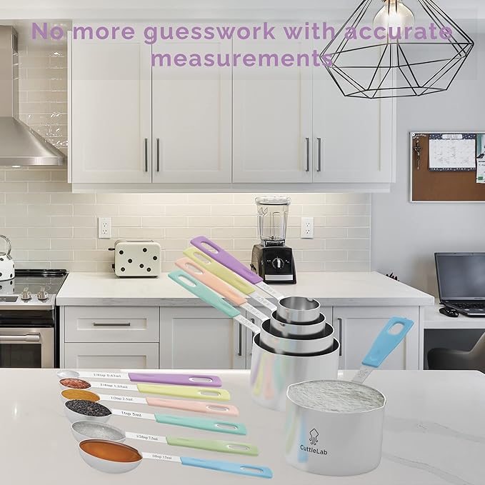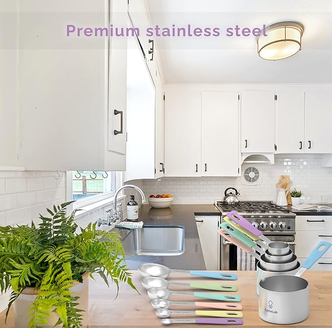 Measuring Cups and Measuring Spoons Set of 14 - Stainless Steel Measuring Cups and Spoons Set, Includes 1/8 Teaspoon Measuring Spoon, 1/8 Cup Measuring Cup, Leveler Dry (14,Cotton Candy)