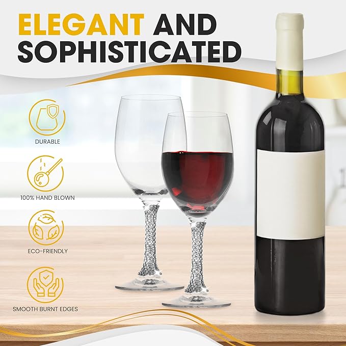 - EXQUISITE ELEGANCE: Elevate every toast with our modern red wine glasses with beautifully embelished diamond-like rhinestones stem, offering a luxurious touch to your sipping experience