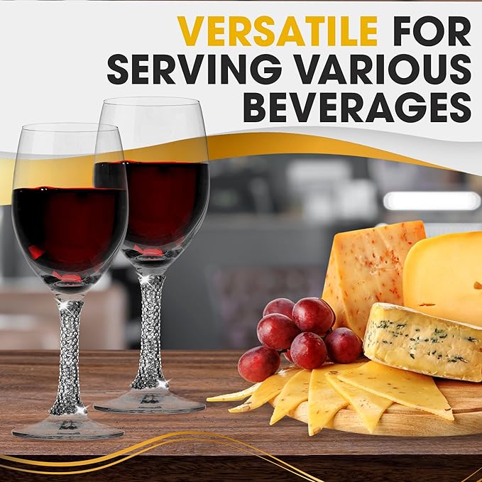 - TIMELESS CELEBRATIONS: Embrace the art of celebration with these classic large wine glasses with rhinestone stem design, making a statement at any occasion or holiday gathering