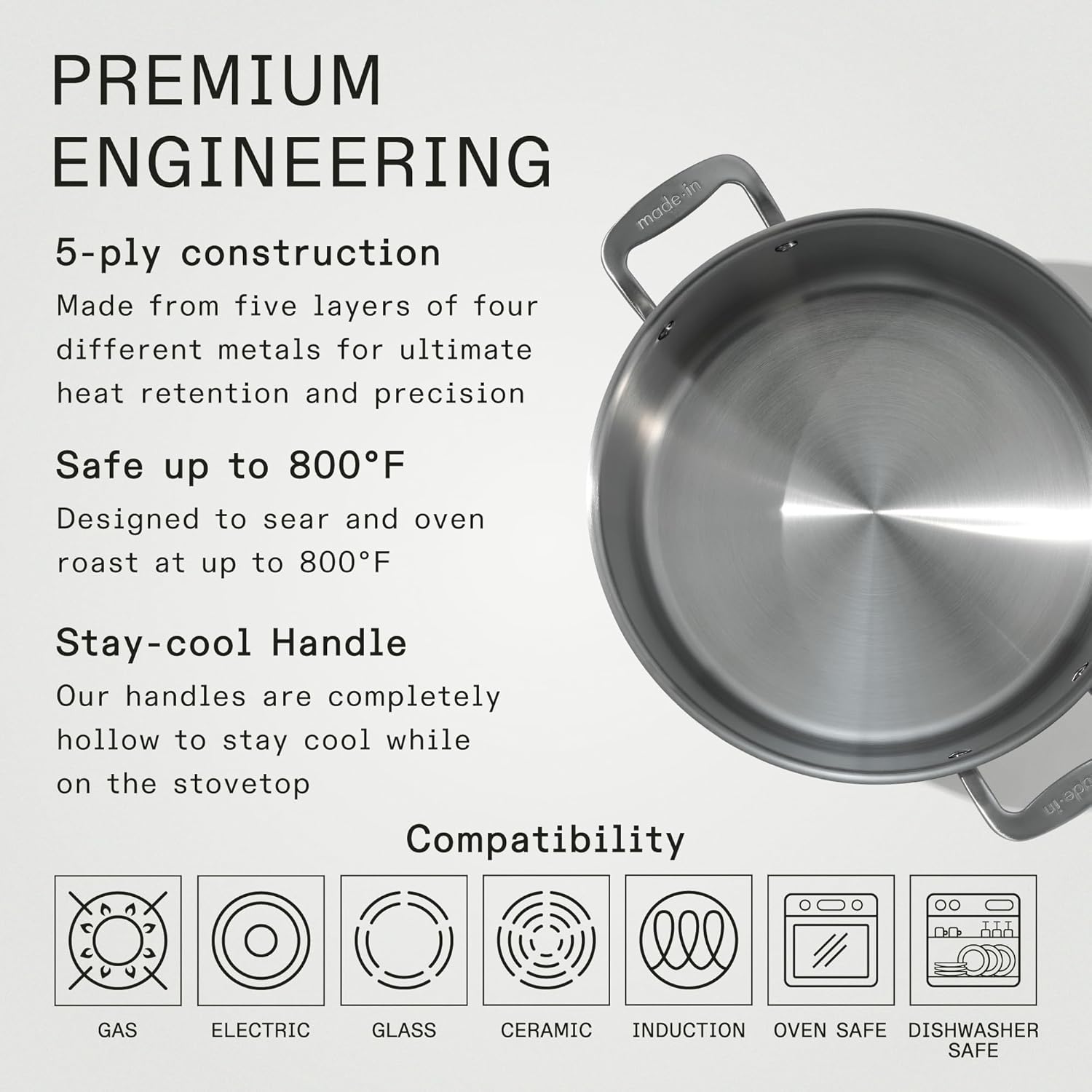 - Essential for Every Kitchen - The Made In Stainless Clad Stock Pot is a must-have kitchen tool, offering maximum heat control, responsiveness, and versatility to elevate your cooking experience