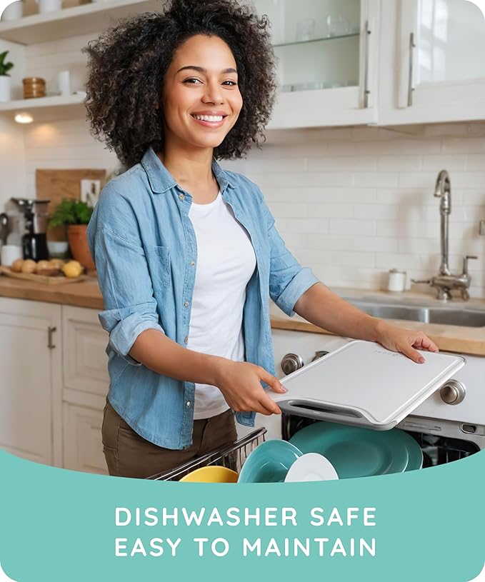 - ⨠EASY TO USE! Plastic cutting boards for kitchen use feature deep grooved edges to collect of meat and fruit juices. No need to worry about splattering your counters when preparing and serving your favorite juicy foods with our cutting board set. Count on the long-lasting stability, dependable design, and impervious surface to scuffs and stains of our kitchen cutting board and show off your cooking skills to their fullest extent!
