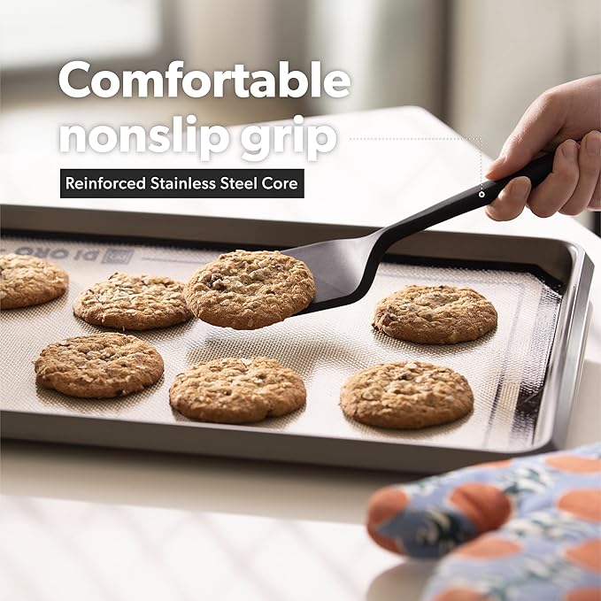 - A REVOLUTIONARY SPATULA SET - While traditional spatulas are cheap, flimsy, and easily melt when exposed to high-heat, the new DI ORO 2-Piece Seamless Silicone Turner Spatula Set is constructed with 100% pure 600ºF heat-proof and no fillers silicone. Each piece is 100% safe for nonstick cookware, and strikes the right balance between strength and flexibility. Unlike poorly designed spatulas that end up in the trash, each turner's BPA free and LFGB Certified silicone will stand the test of time.