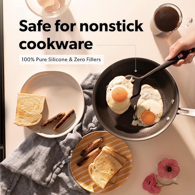 - THE ARTISTRY OF NON-STICK COOKING – Perfect your culinary creations with ease and comfort. Fashioned from non-stick pro-grade silicone, these turner spatulas are your trusted allies in the kitchen. Whether delicately flipping delicate fish fillets or confidently flipping hearty burgers, rest assured they won't damage your nonstick cookware