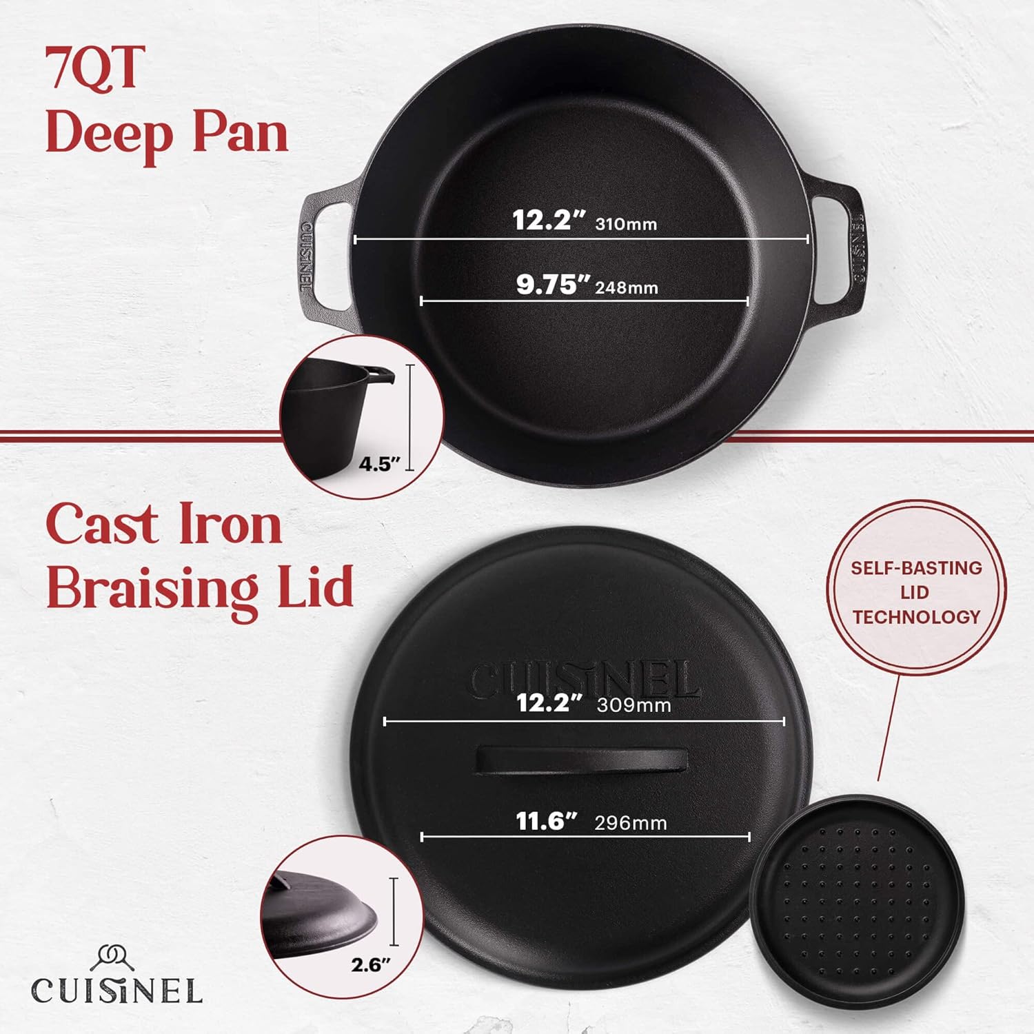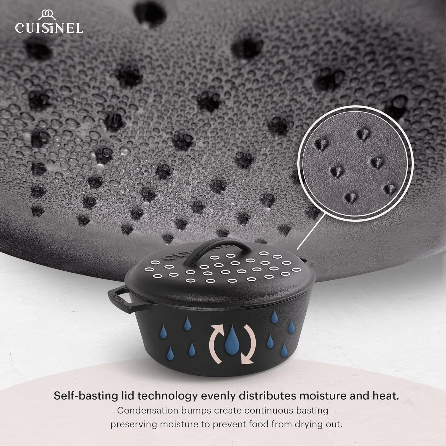 - THE DUTCH OVEN - NOW WITH A HEAVY DUTY CAST IRON BRAISER LID β With its meticulously placed drip-points - along with even moisture and heat distribution - effectively turns your pot into a casserole or braiser for evenly cooked results. Cooker and cover can withstand any temperatures without fear of shattering or cracking.