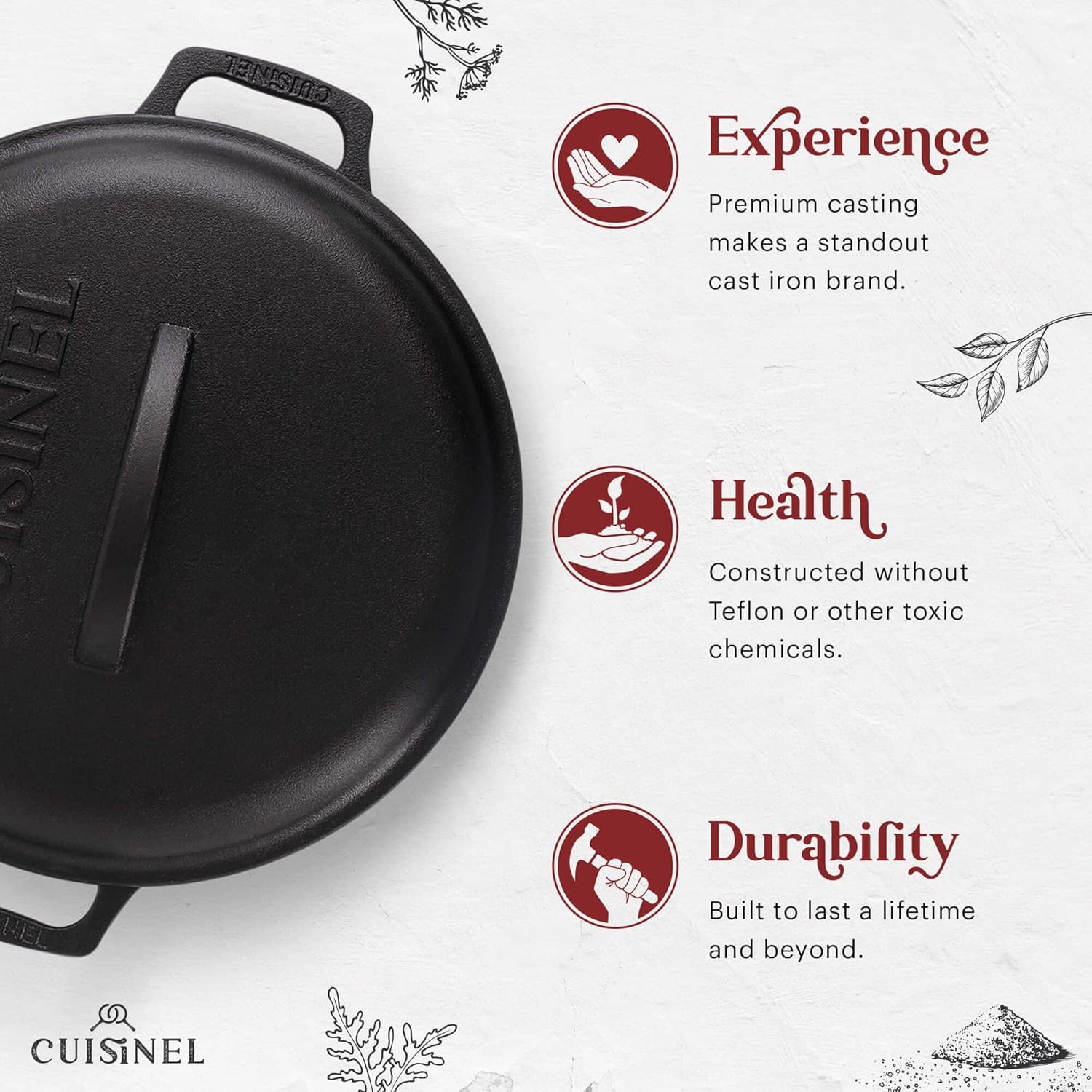 - CRAFTSMANSHIP β Each all-purpose cast iron utensil is crafted with seasoned cast iron that can outlast years of cooking and washing for long-term reliability.