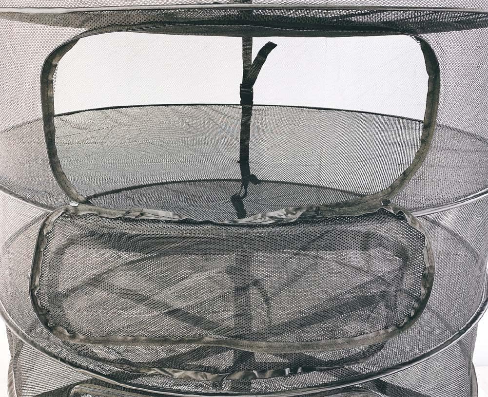 - ā Zipper Door Opening Drying Rack allows for each level to be completely enclosed. So, you could gently maneuver, shake, and flip over the top to the bottom without losing contents