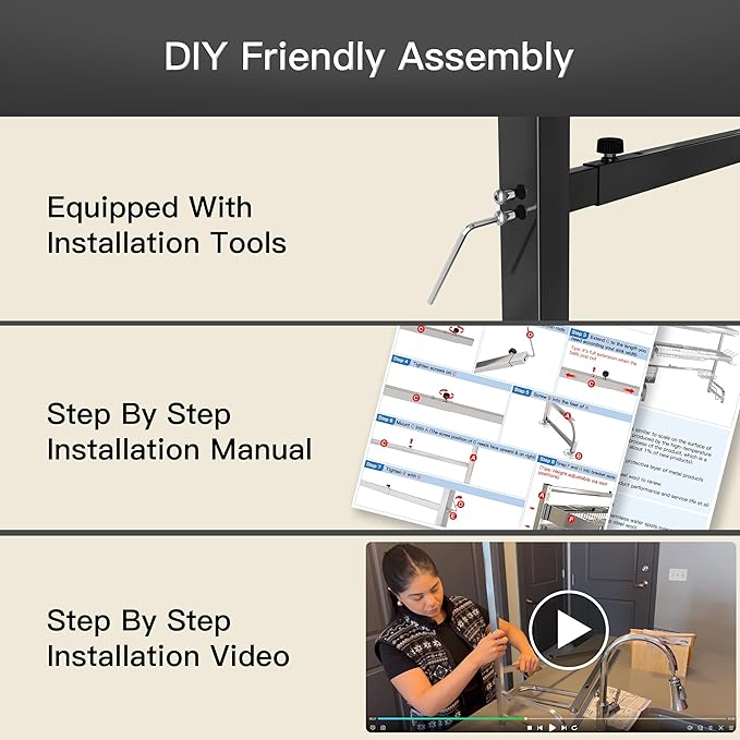 - ๐งฐ DIY Friendly Assembly with Tools: Includes a hex key and step by step visual guide for straightforward installation. Predrilled holes let you mount the sink dish drying rack horizontally above the sink without permanent alterations, perfect for renters or those avoiding wall damage. No technical skills required, assemble in minutes