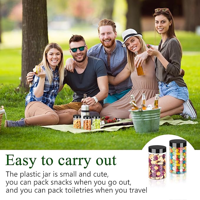 - 【 High-Quality Material】This plastic jars with lids are made of high-quality food-grade PET plastic, sturdy, durable, reusable, transparent and lightweight. You can safely use these empty jars to fill your food without worrying about the effects of the jars, these food jars will meet your needs for your food storage, just put your favourite food in them. NOT DISHWASHER SAFE.